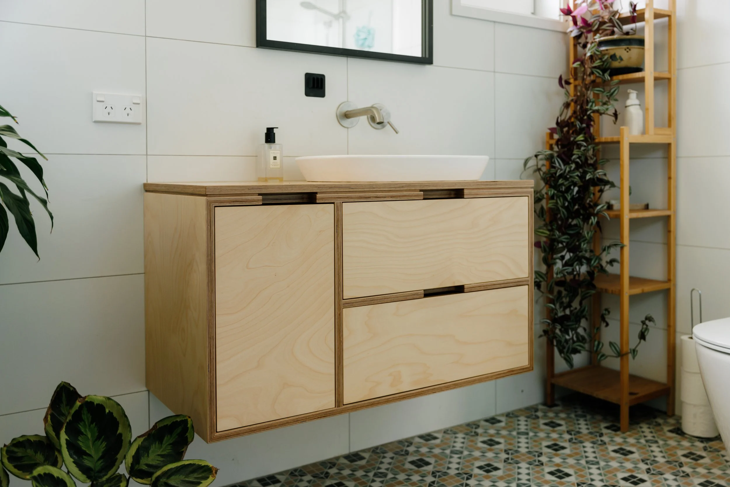 One large cupboard for ample storage and two drawers, all with Blum soft close hardware.
