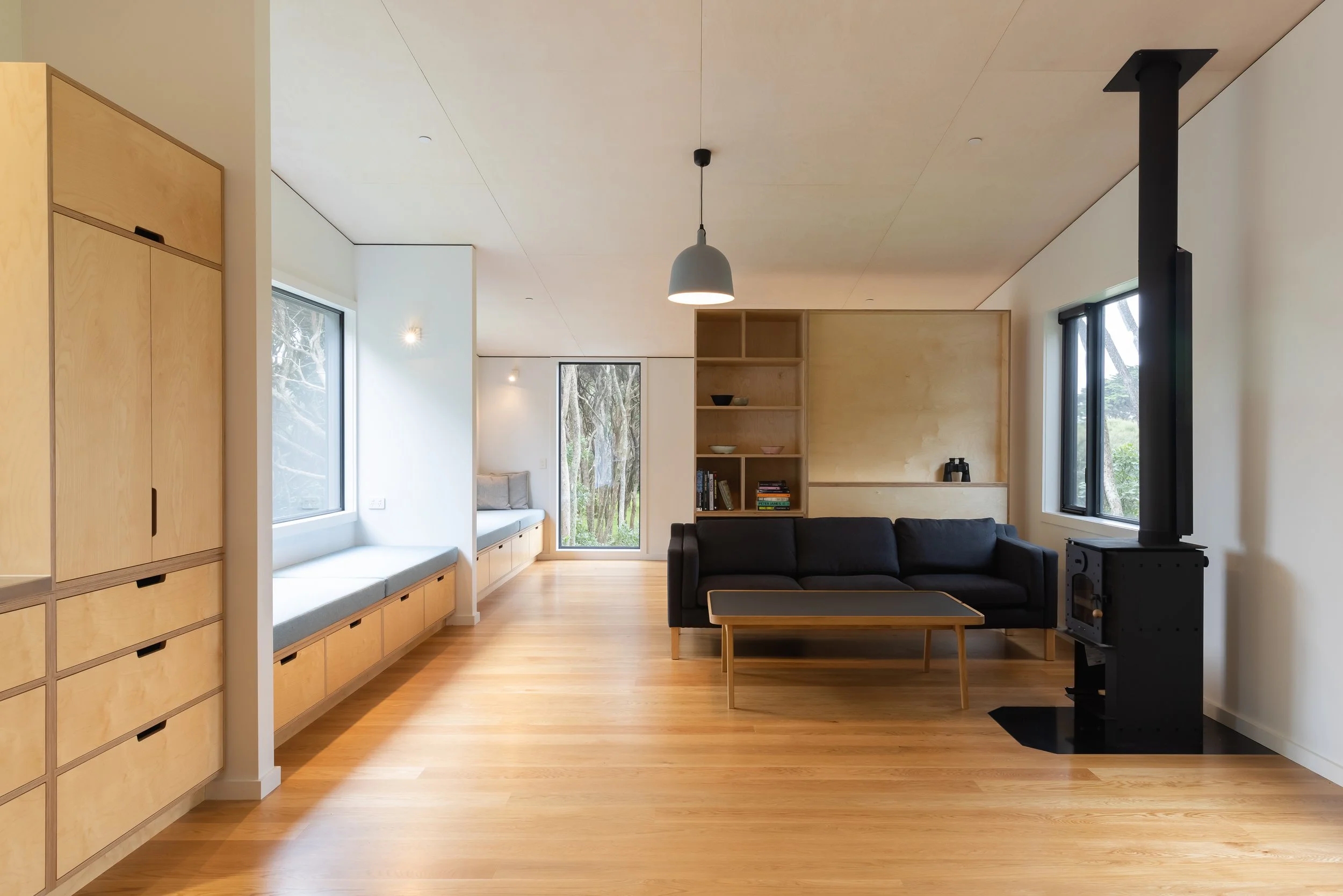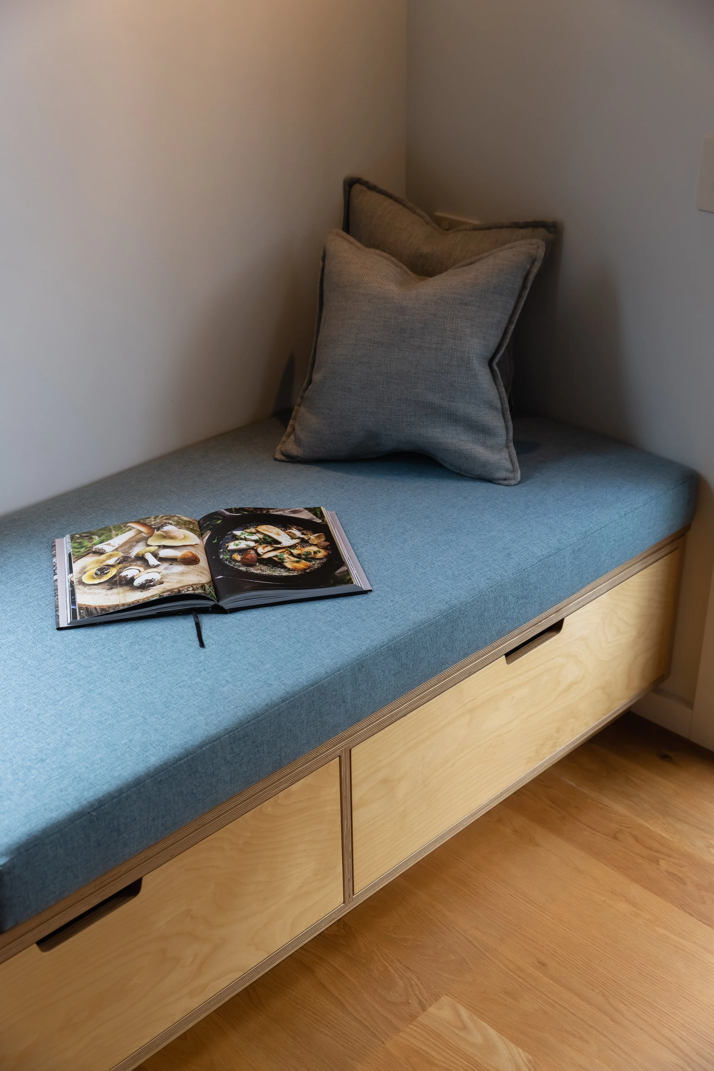 Birch plywood bench seating forms an integral part of this bespoke design.