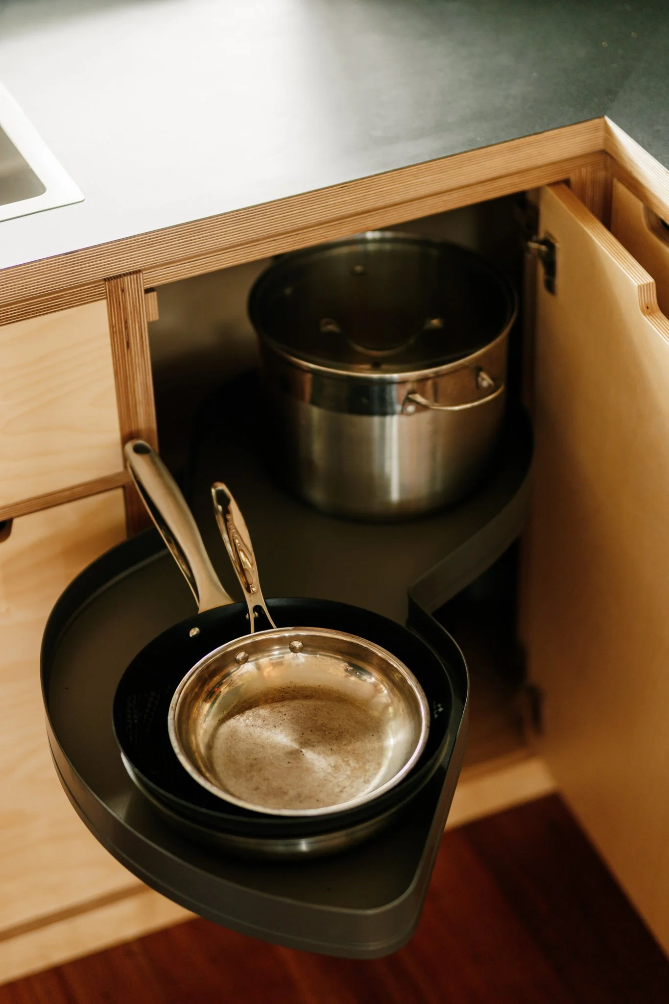 The Lemans corner pull out system offers more accessible storage than drawers making it a highly functional and virtually overload proof solution for maximising corner space. Each shelf supports up to 25kg making it a great place to store the heavy items in your kitchen.